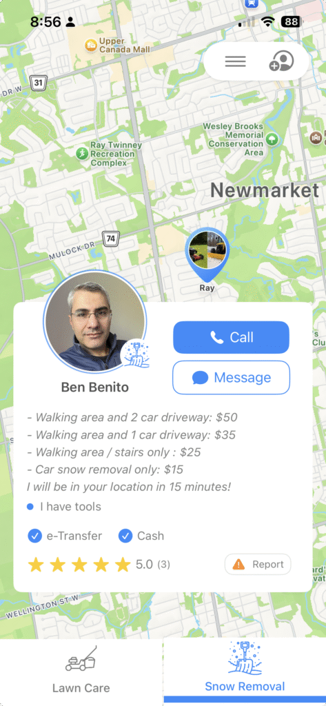 With Yardyman, you can instantly see local people available to help right on the map. Whether it’s clearing your driveway in winter or keeping your lawn fresh in summer, help is just a tap away.